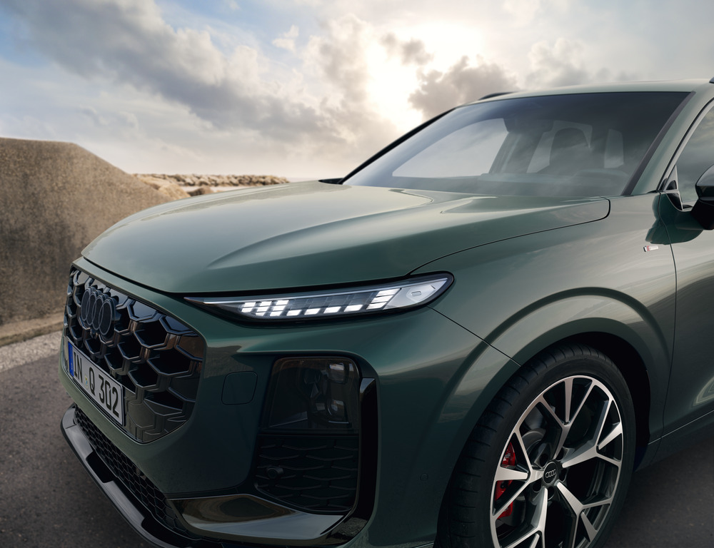 En självsäker look. Audi Q3 SUV imponerar i alla vinklar. Fronten med distinkta luftintag i kombination med de smala strålkastarna drar blickarna till sig.